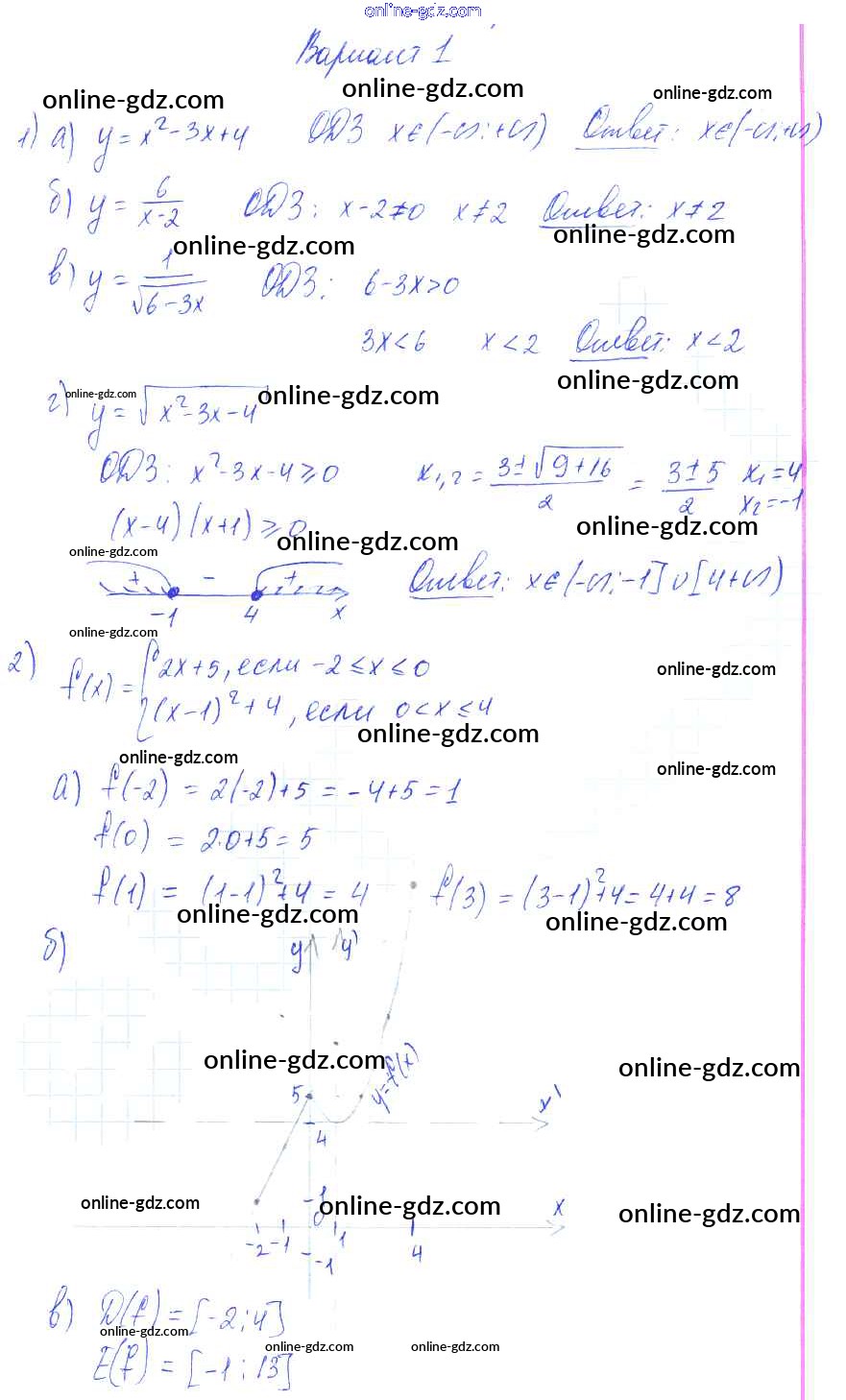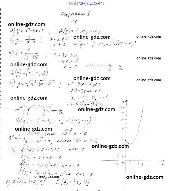 Готовые домашние задания по Алгебре за 9 класс Самостоятельные работы Александрова УМК Базовый уровень 2016 - СР-11. Определение числовой функции Тема 3. Числовые функции вариант 1