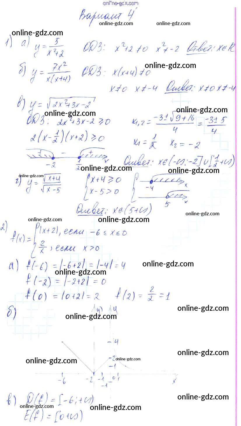 Готовые домашние задания по Алгебре за 9 класс Самостоятельные работы Александрова УМК Базовый уровень 2016 - СР-11. Определение числовой функции Тема 3. Числовые функции вариант 4
