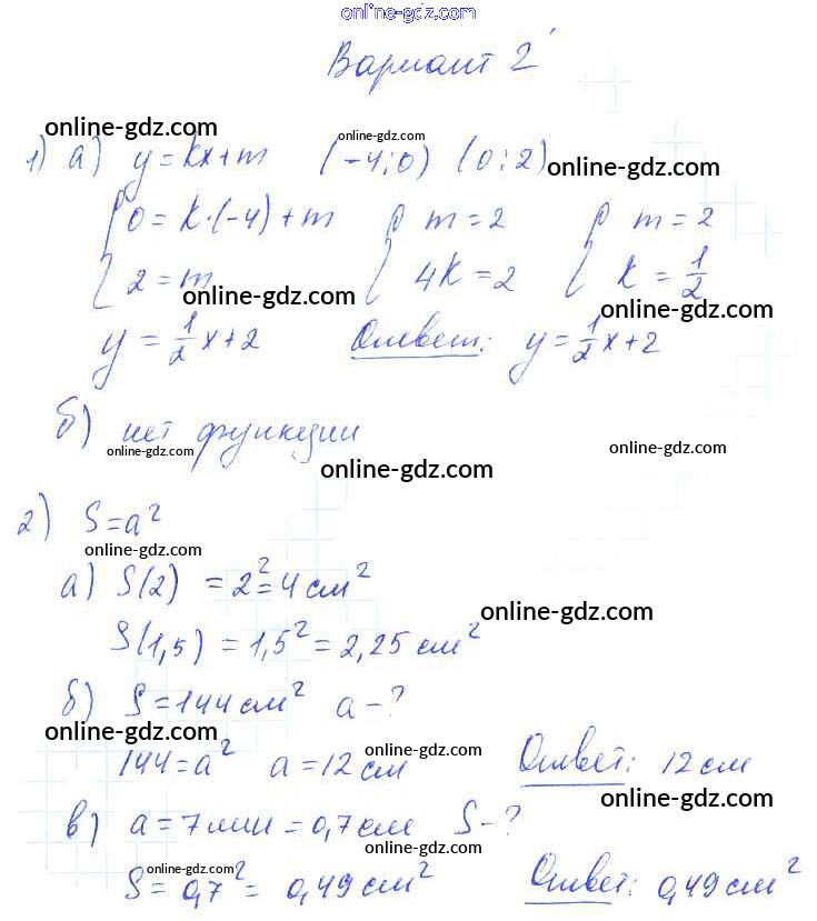 Готовые домашние задания по Алгебре за 9 класс Самостоятельные работы Александрова УМК Базовый уровень 2016 - СР-12. Способы задания функций Тема 3. Числовые функции вариант 2