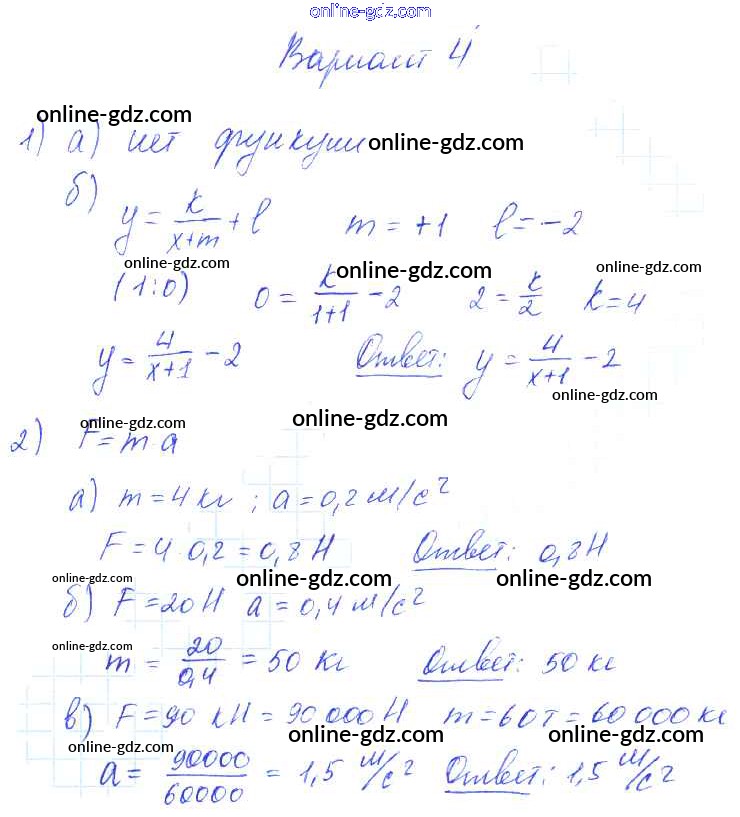 Готовые домашние задания по Алгебре за 9 класс Самостоятельные работы Александрова УМК Базовый уровень 2016 - СР-12. Способы задания функций Тема 3. Числовые функции вариант 4