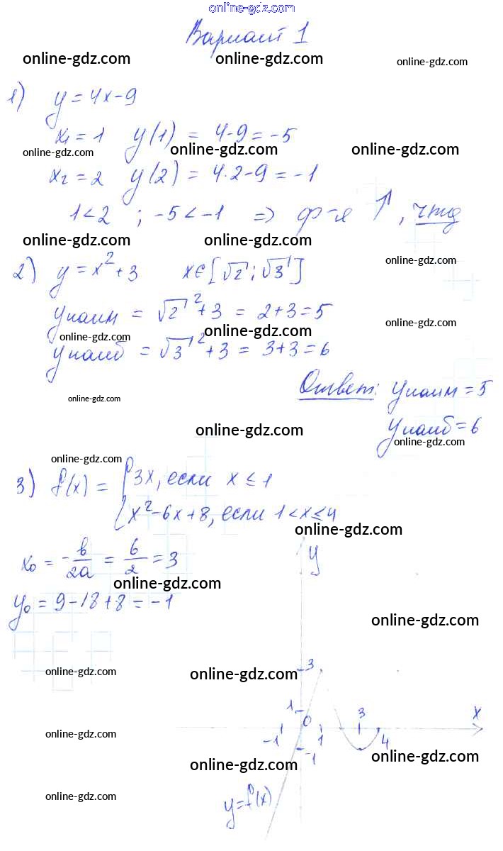 Готовые домашние задания по Алгебре за 9 класс Самостоятельные работы Александрова УМК Базовый уровень 2016 - СР-13. Свойства функций Тема 3. Числовые функции вариант 1