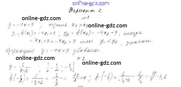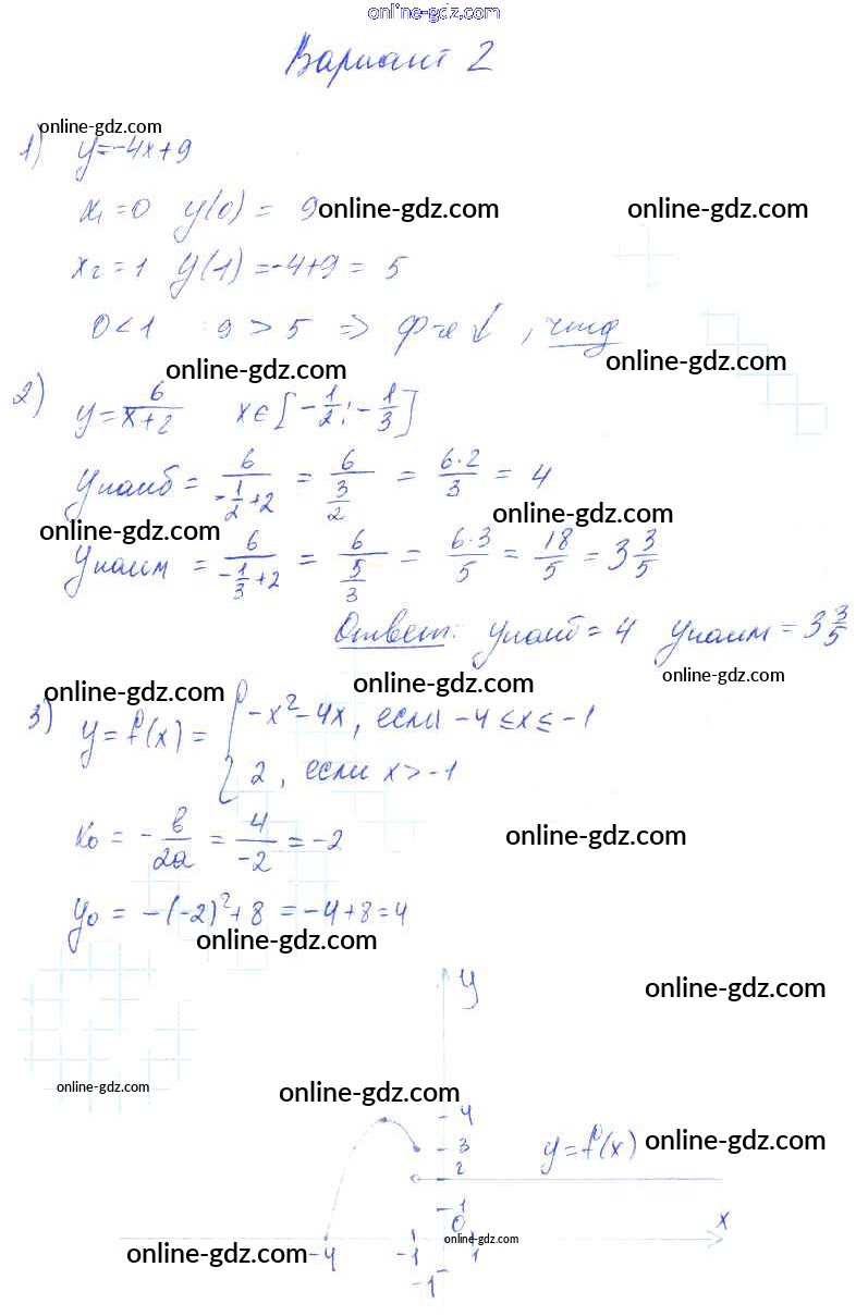 Готовые домашние задания по Алгебре за 9 класс Самостоятельные работы Александрова УМК Базовый уровень 2016 - СР-13. Свойства функций Тема 3. Числовые функции вариант 2
