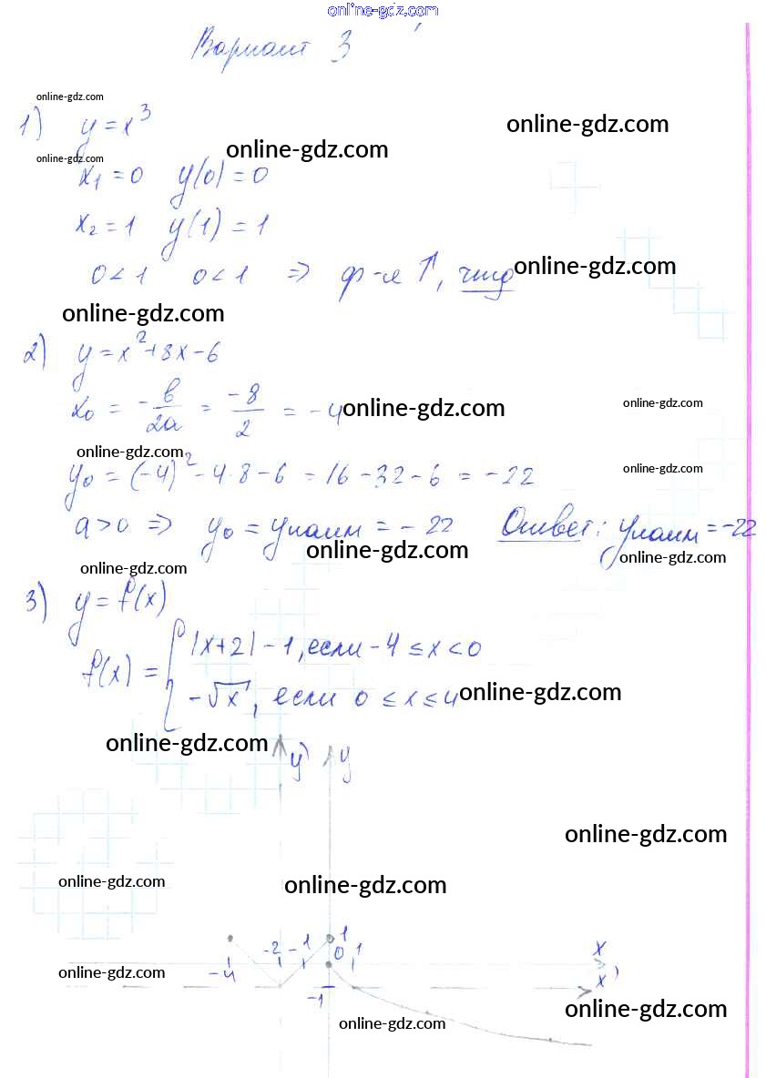 Готовые домашние задания по Алгебре за 9 класс Самостоятельные работы Александрова УМК Базовый уровень 2016 - СР-13. Свойства функций Тема 3. Числовые функции вариант 3
