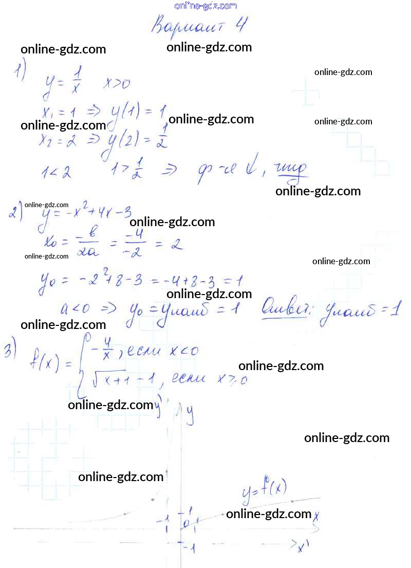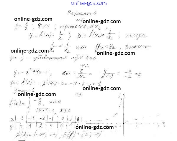 Готовые домашние задания по Алгебре за 9 класс Самостоятельные работы Александрова УМК Базовый уровень 2016 - СР-13. Свойства функций Тема 3. Числовые функции вариант 4