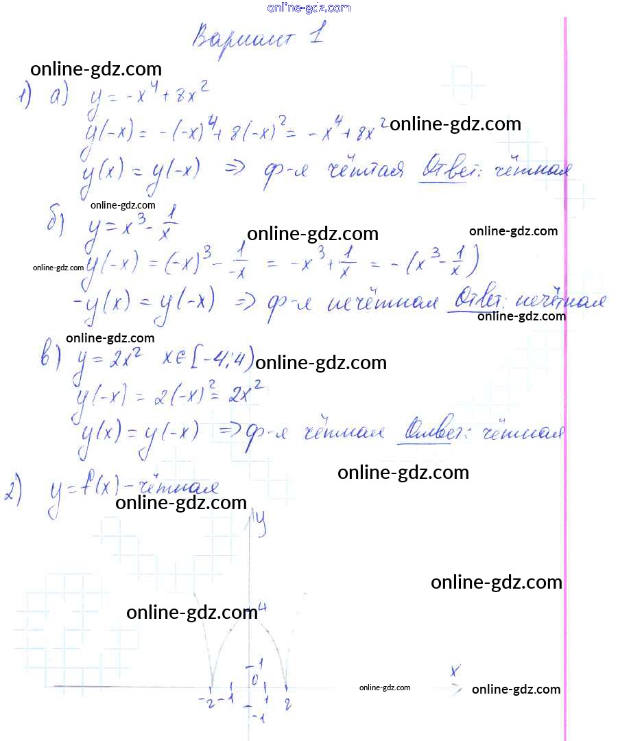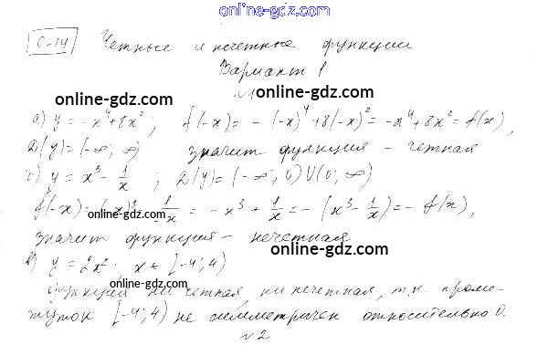 Готовые домашние задания по Алгебре за 9 класс Самостоятельные работы Александрова УМК Базовый уровень 2016 - СР-14. Четные и нечетные функции Тема 3. Числовые функции вариант 1