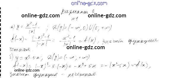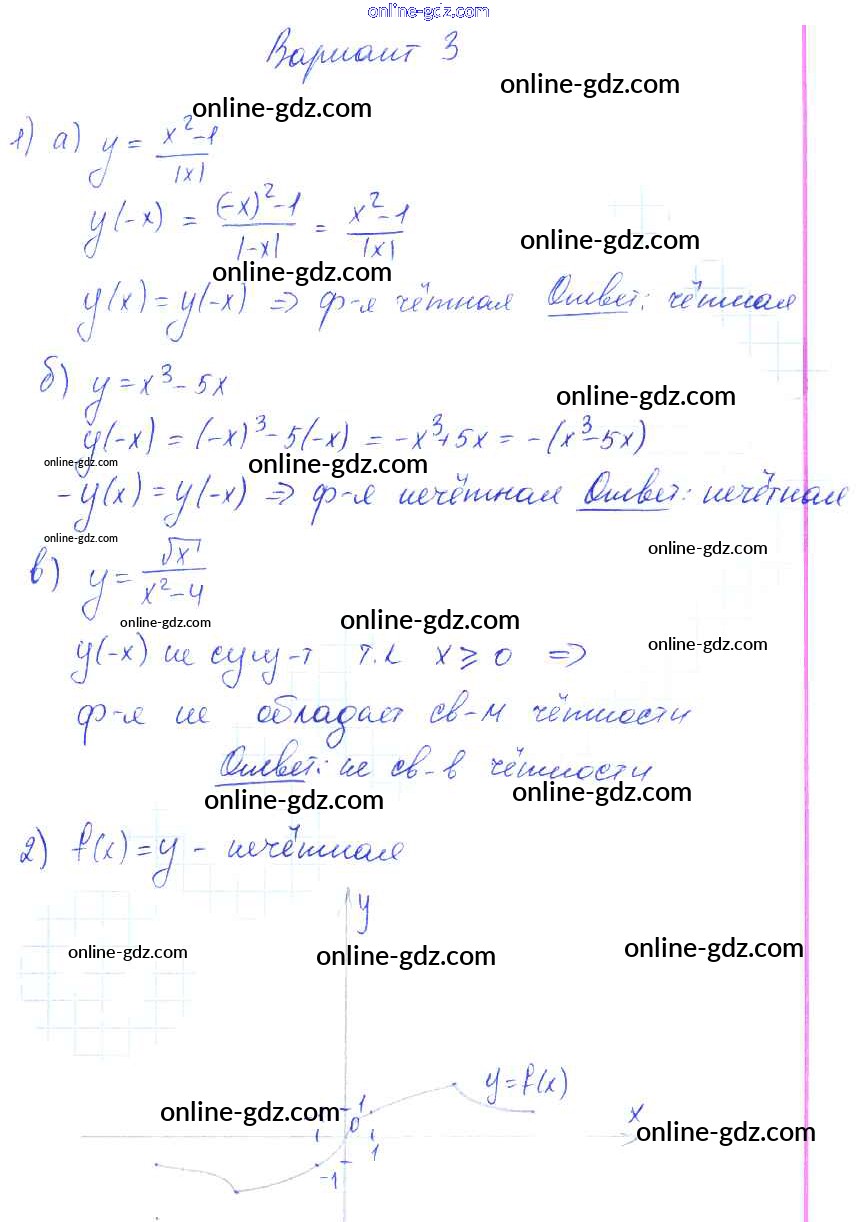 Готовые домашние задания по Алгебре за 9 класс Самостоятельные работы Александрова УМК Базовый уровень 2016 - СР-14. Четные и нечетные функции Тема 3. Числовые функции вариант 3