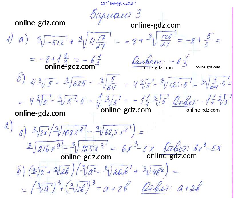 Готовые домашние задания по Алгебре за 9 класс Самостоятельные работы Александрова УМК Базовый уровень 2016 - СР-18. Функции y=∛x ее свойства и график Тема 3. Числовые функции вариант 3