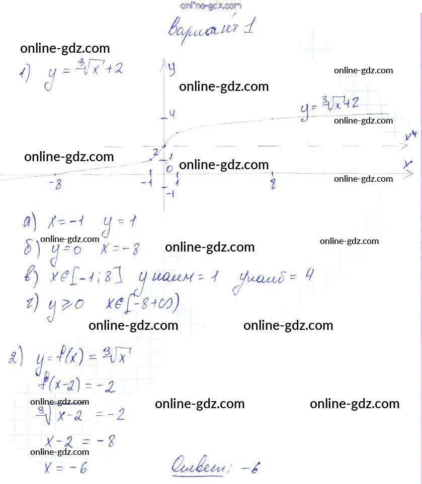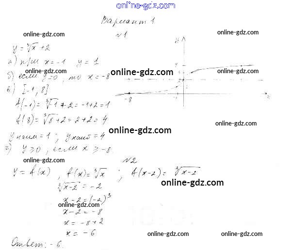 Готовые домашние задания по Алгебре за 9 класс Самостоятельные работы Александрова УМК Базовый уровень 2016 - СР-19. Функции y=∛x ее свойства и график Тема 3. Числовые функции вариант 1