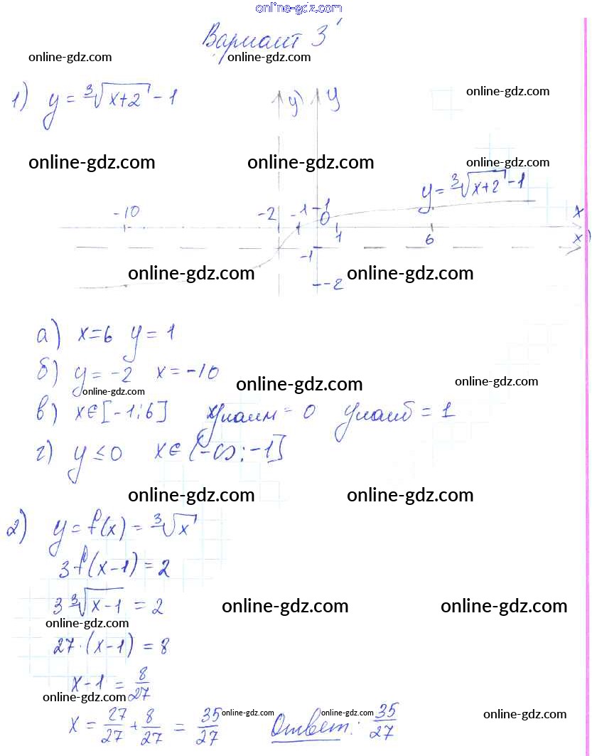 Готовые домашние задания по Алгебре за 9 класс Самостоятельные работы Александрова УМК Базовый уровень 2016 - СР-19. Функции y=∛x ее свойства и график Тема 3. Числовые функции вариант 3