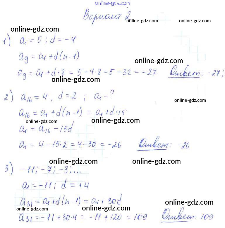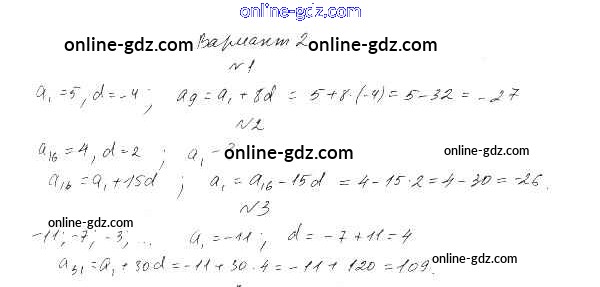 Готовые домашние задания по Алгебре за 9 класс Самостоятельные работы Александрова УМК Базовый уровень 2016 - СР-22. Арифметическая прогрессия Тема 4. Прогрессии вариант 2