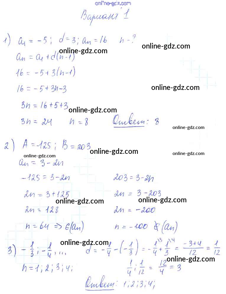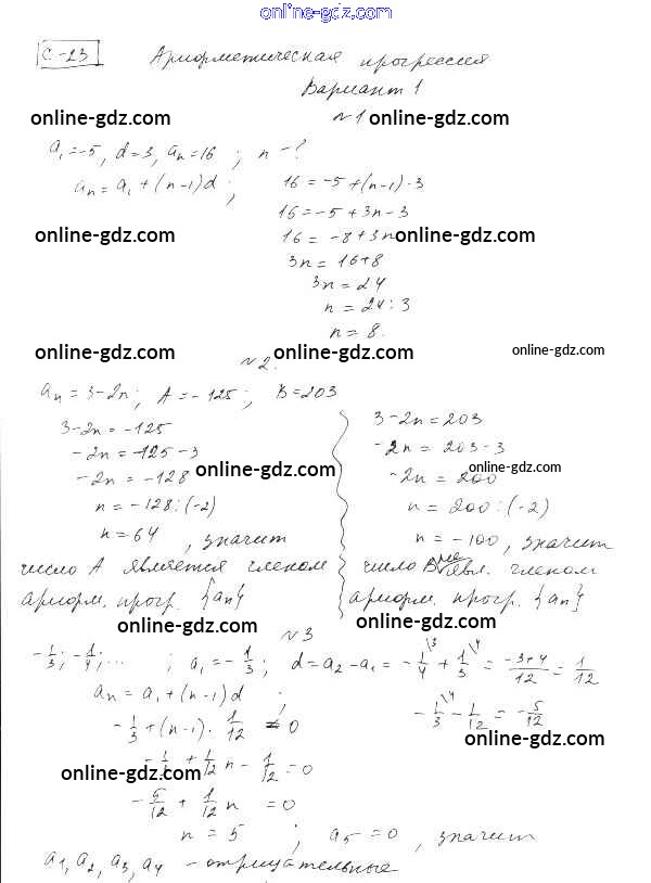 Готовые домашние задания по Алгебре за 9 класс Самостоятельные работы Александрова УМК Базовый уровень 2016 - СР-23. Арифметическая прогрессия Тема 4. Прогрессии вариант 1