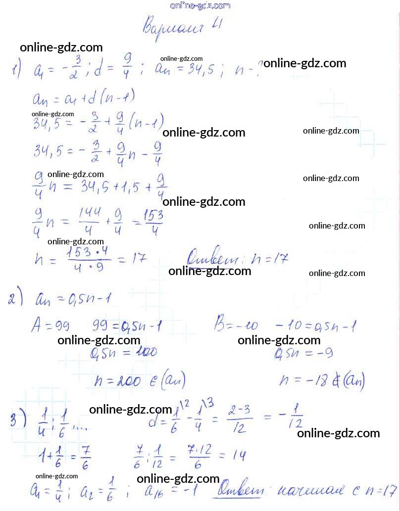 Готовые домашние задания по Алгебре за 9 класс Самостоятельные работы Александрова УМК Базовый уровень 2016 - СР-23. Арифметическая прогрессия Тема 4. Прогрессии вариант 4