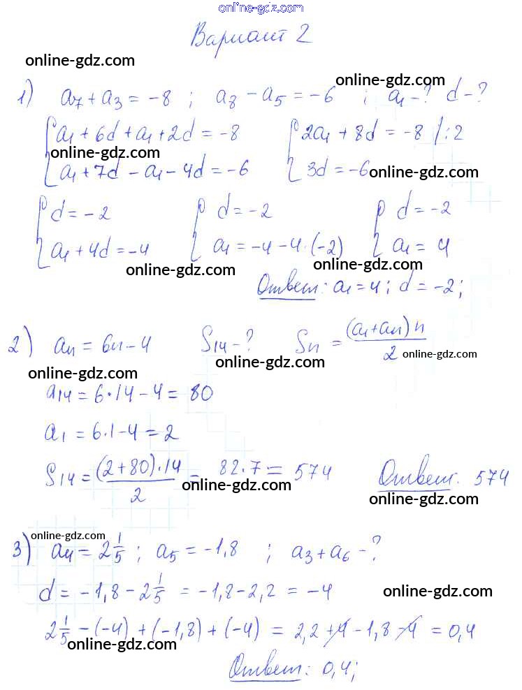 Готовые домашние задания по Алгебре за 9 класс Самостоятельные работы Александрова УМК Базовый уровень 2016 - СР-24. Арифметическая прогрессия Тема 4. Прогрессии вариант 2