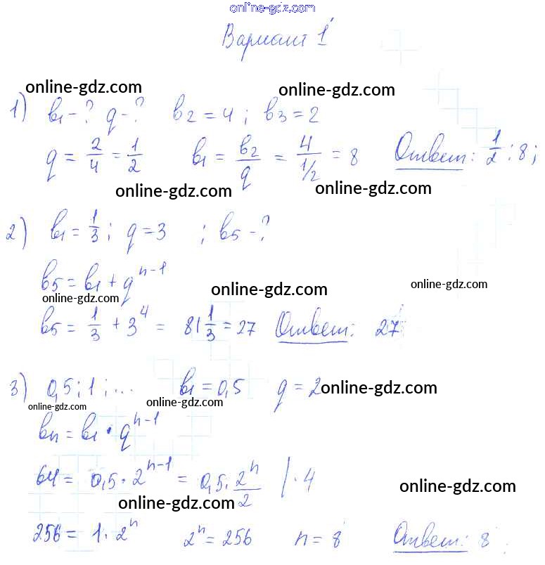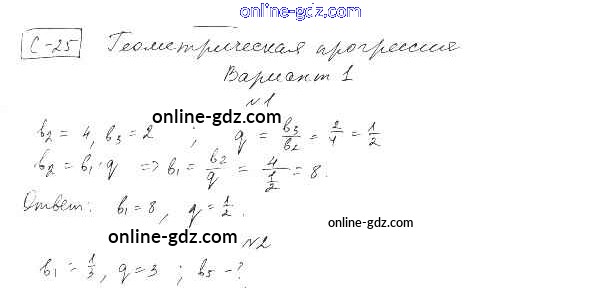 Готовые домашние задания по Алгебре за 9 класс Самостоятельные работы Александрова УМК Базовый уровень 2016 - СР-25. Геометрическая прогрессия Тема 4. Прогрессии вариант 1