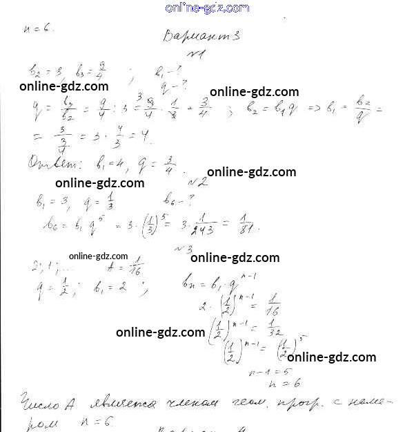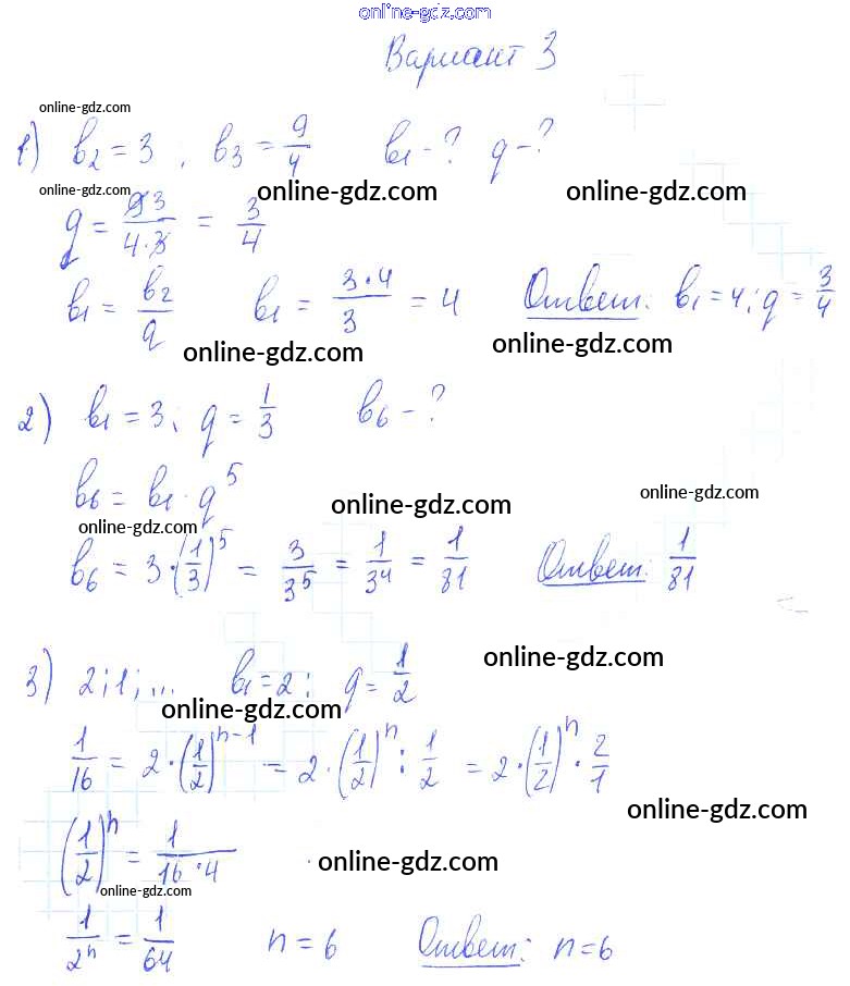 Готовые домашние задания по Алгебре за 9 класс Самостоятельные работы Александрова УМК Базовый уровень 2016 - СР-25. Геометрическая прогрессия Тема 4. Прогрессии вариант 3