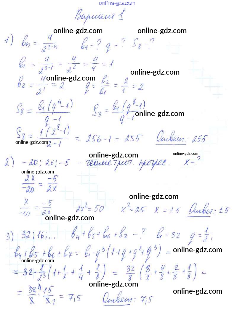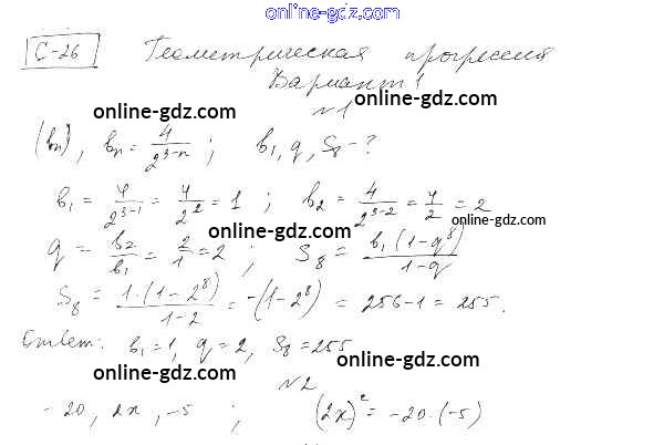 Готовые домашние задания по Алгебре за 9 класс Самостоятельные работы Александрова УМК Базовый уровень 2016 - СР-26. Геометрическая прогрессия Тема 4. Прогрессии вариант 1