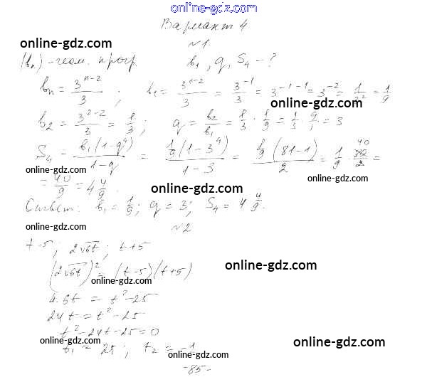 Готовые домашние задания по Алгебре за 9 класс Самостоятельные работы Александрова УМК Базовый уровень 2016 - СР-26. Геометрическая прогрессия Тема 4. Прогрессии вариант 4