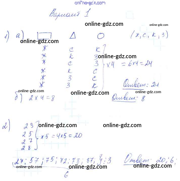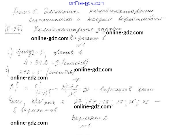 Готовые домашние задания по Алгебре за 9 класс Самостоятельные работы Александрова УМК Базовый уровень 2016 - СР-27. Комбинаторные задачи Тема 5. Элементы комбинаторики, статистики и теории вероятностей вариант 1