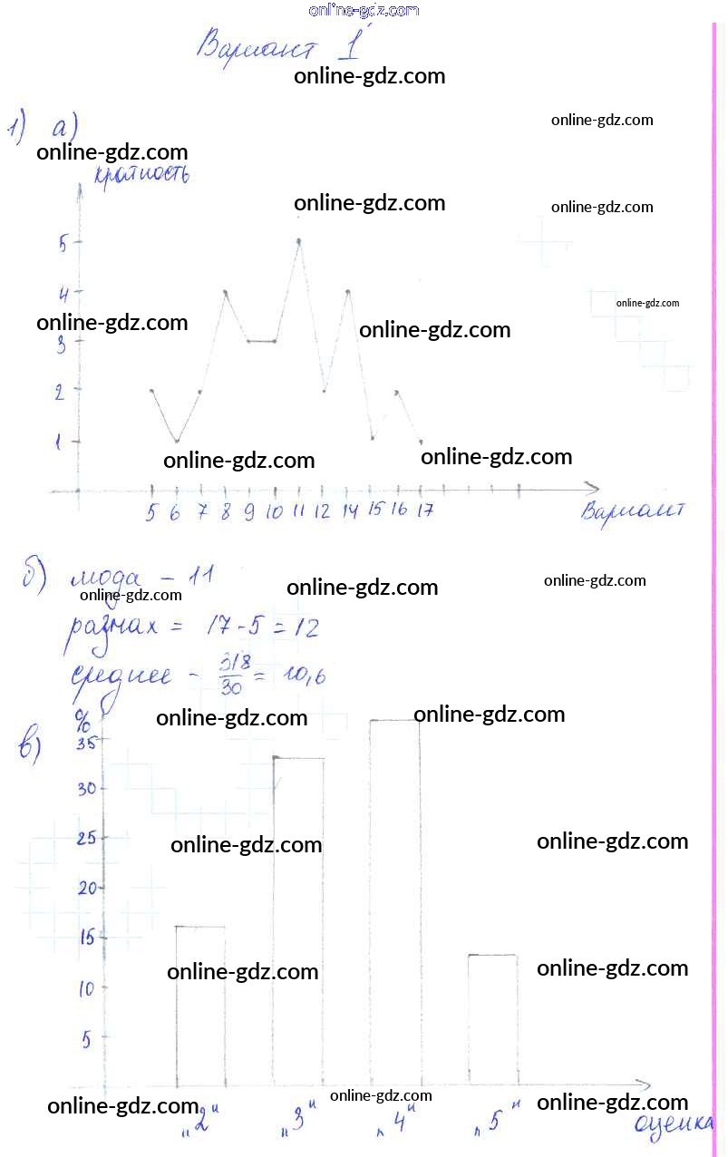 Готовые домашние задания по Алгебре за 9 класс Самостоятельные работы Александрова УМК Базовый уровень 2016 - СР-30. Статистика − дизайн информации Тема 5. Элементы комбинаторики, статистики и теории вероятностей вариант 1