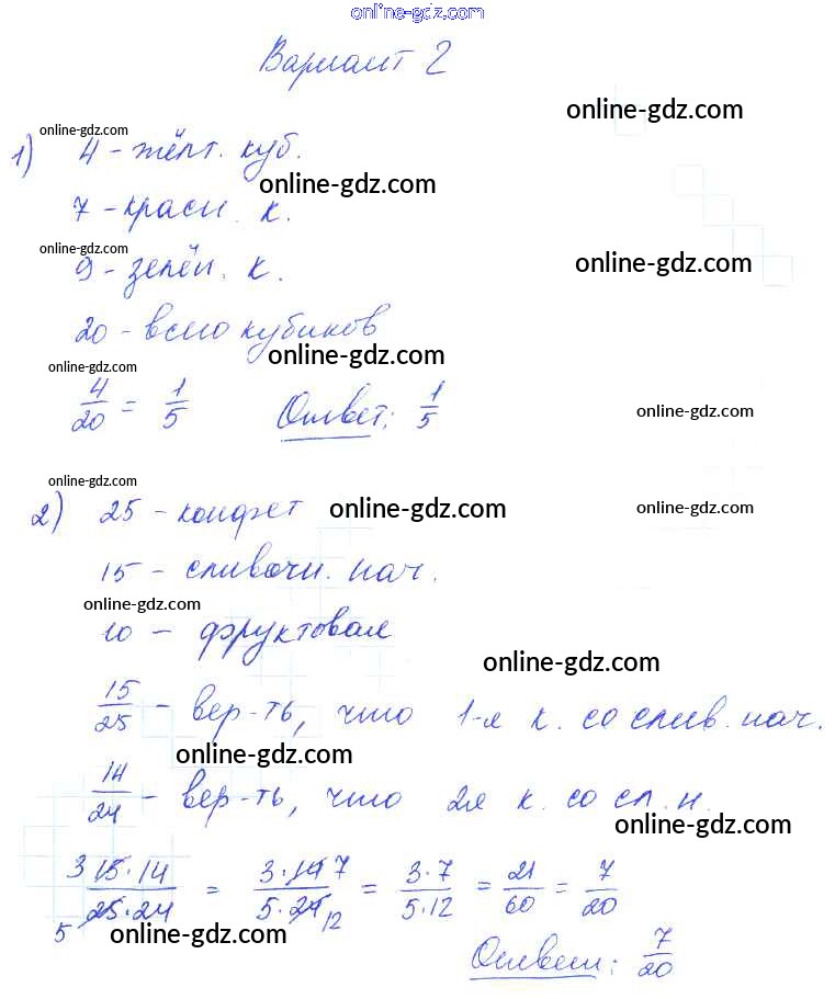 Готовые домашние задания по Алгебре за 9 класс Самостоятельные работы Александрова УМК Базовый уровень 2016 - СР-31. Простейшие вероятностные задачи Тема 5. Элементы комбинаторики, статистики и теории вероятностей вариант 2
