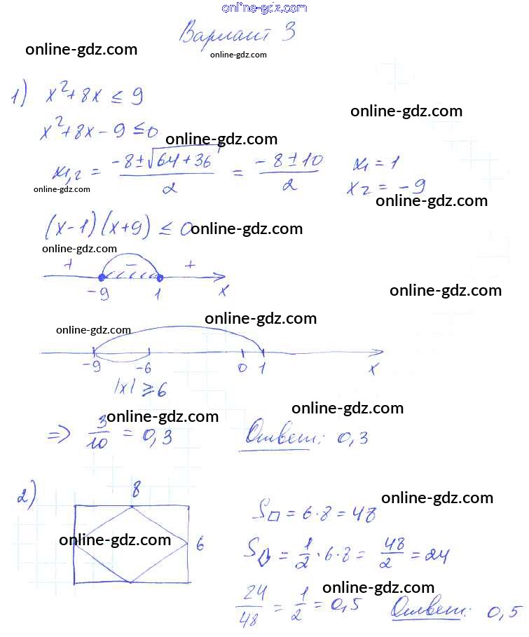 Готовые домашние задания по Алгебре за 9 класс Самостоятельные работы Александрова УМК Базовый уровень 2016 - СР-32. Простейшие вероятностные задачи Тема 5. Элементы комбинаторики, статистики и теории вероятностей вариант 3