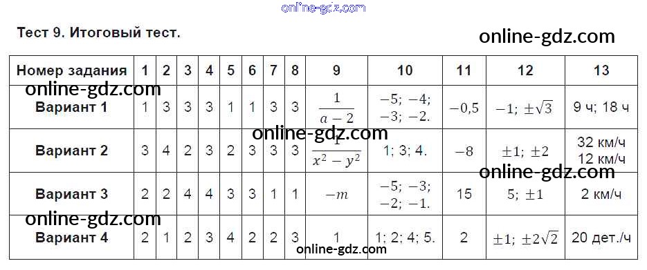 Готовые домашние задания по Алгебре за 9 класс Тематические тесты Дудницын, Кронгауз 2017 - Тесты Тест 9. Итоговый тест