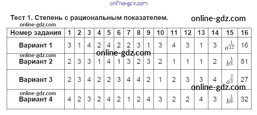 Готовые домашние задания по Алгебре за 9 класс Тематические тесты Ткачева 2014 - Тесты Тест № 1. Степень с рациональным показателем