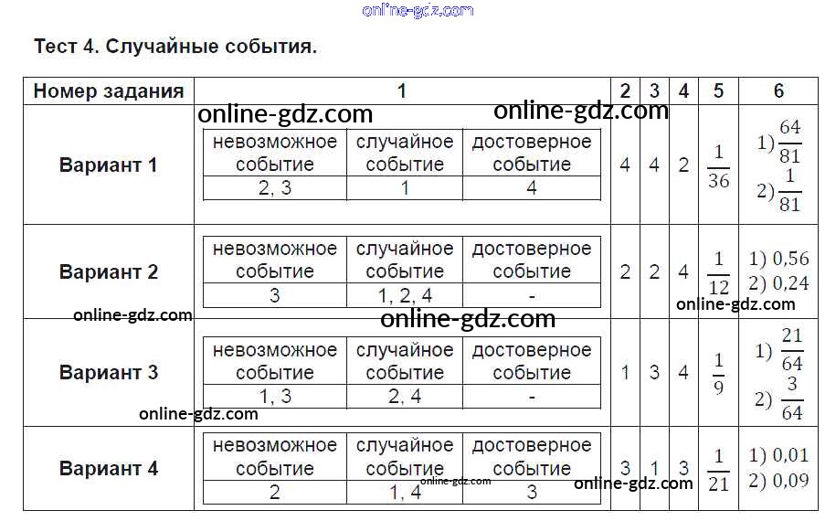 Готовые домашние задания по Алгебре за 9 класс Тематические тесты Ткачева 2014 - Тесты Тест № 4. Случайные события