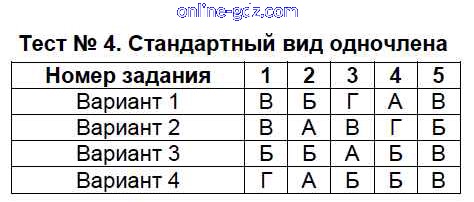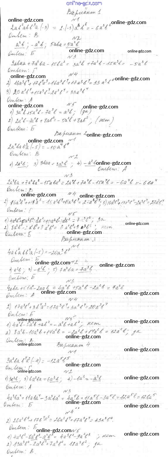 Готовые домашние задания по Алгебре за 7, 8, 9 класс Тесты Мордкович, Тульчинкая Базовый уровень 2013 - 7 класс Тест 4