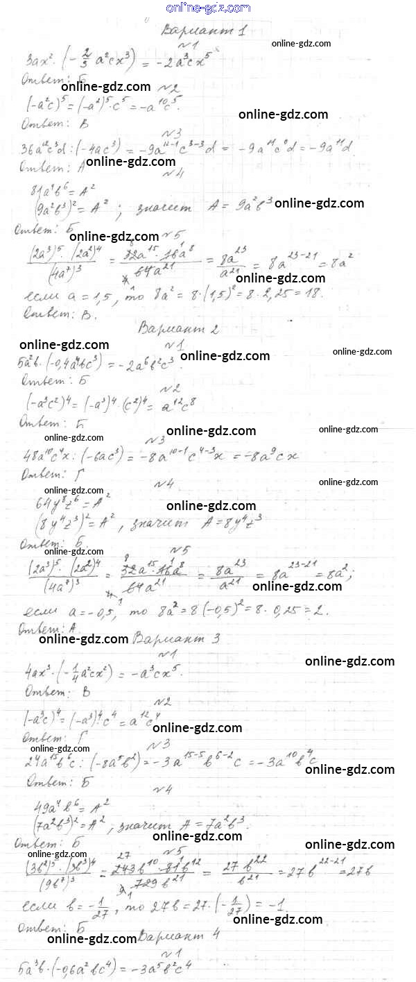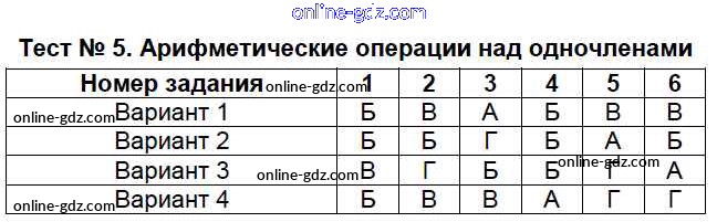 Готовые домашние задания по Алгебре за 7, 8, 9 класс Тесты Мордкович, Тульчинкая Базовый уровень 2013 - 7 класс Тест 5