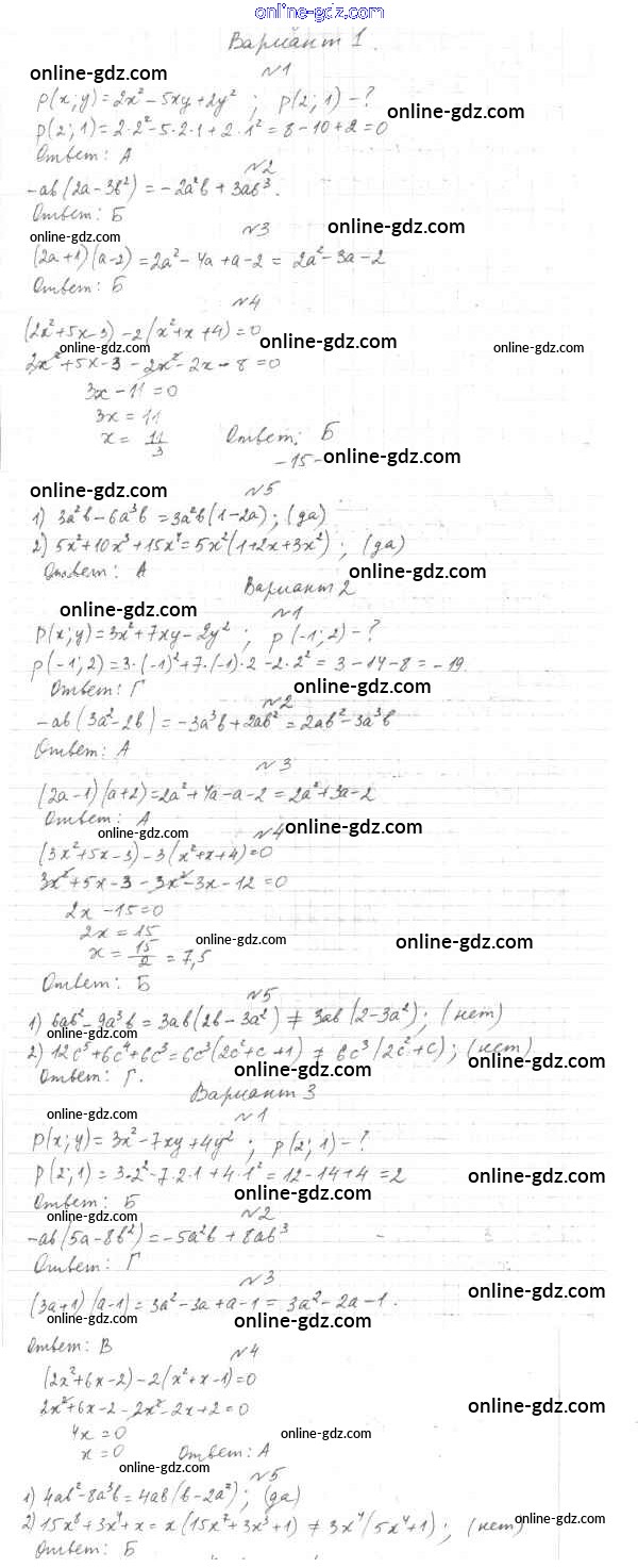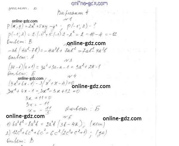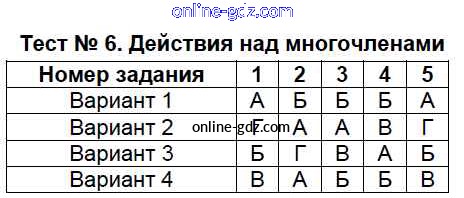 Готовые домашние задания по Алгебре за 7, 8, 9 класс Тесты Мордкович, Тульчинкая Базовый уровень 2013 - 7 класс Тест 6