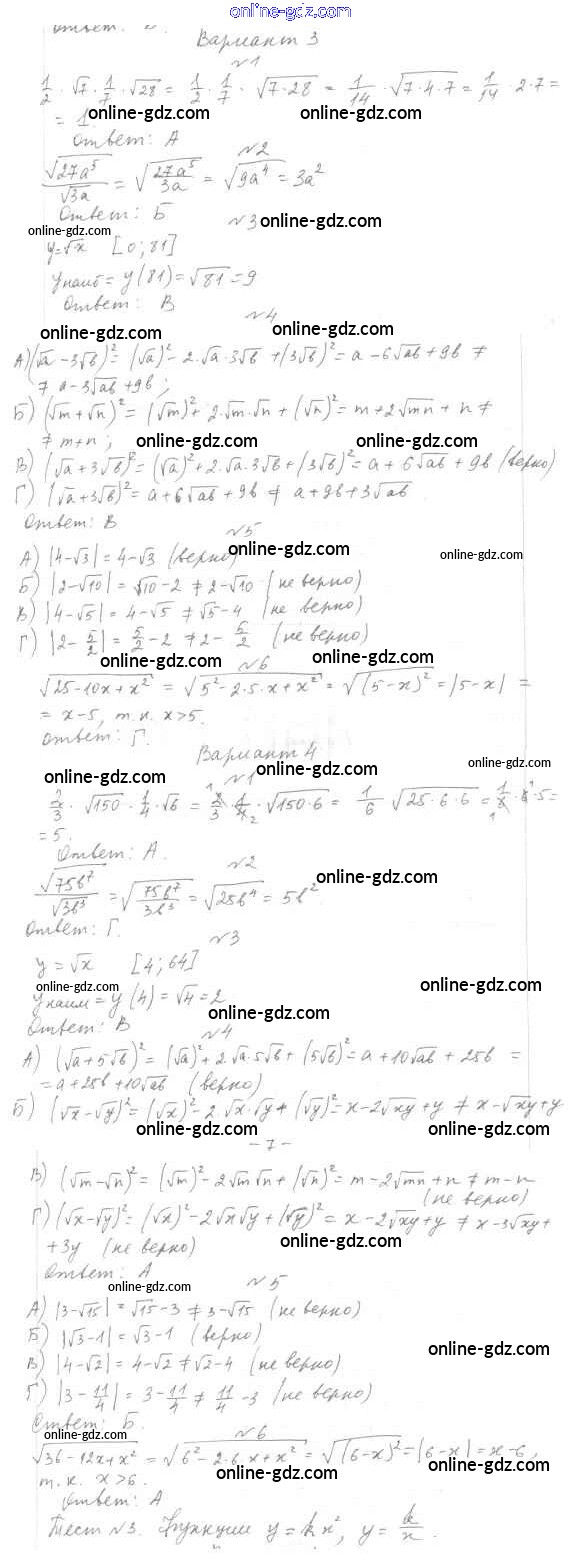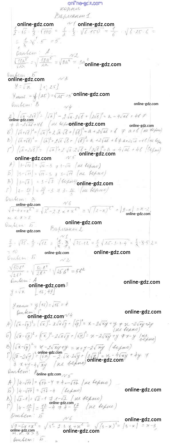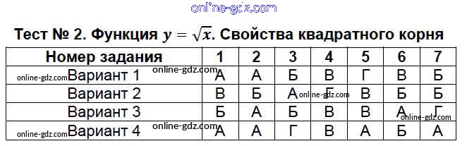 Готовые домашние задания по Алгебре за 7, 8, 9 класс Тесты Мордкович, Тульчинкая Базовый уровень 2013 - 8 класс Тест 2