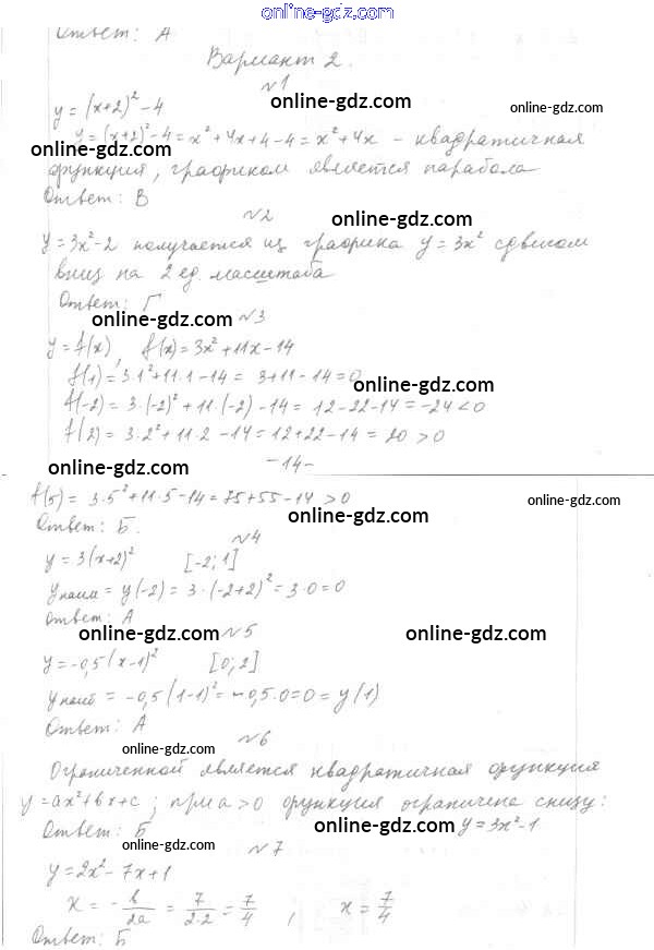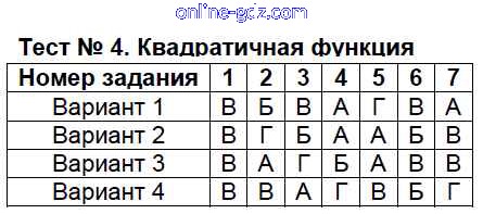 Готовые домашние задания по Алгебре за 7, 8, 9 класс Тесты Мордкович, Тульчинкая Базовый уровень 2013 - 8 класс Тест 4