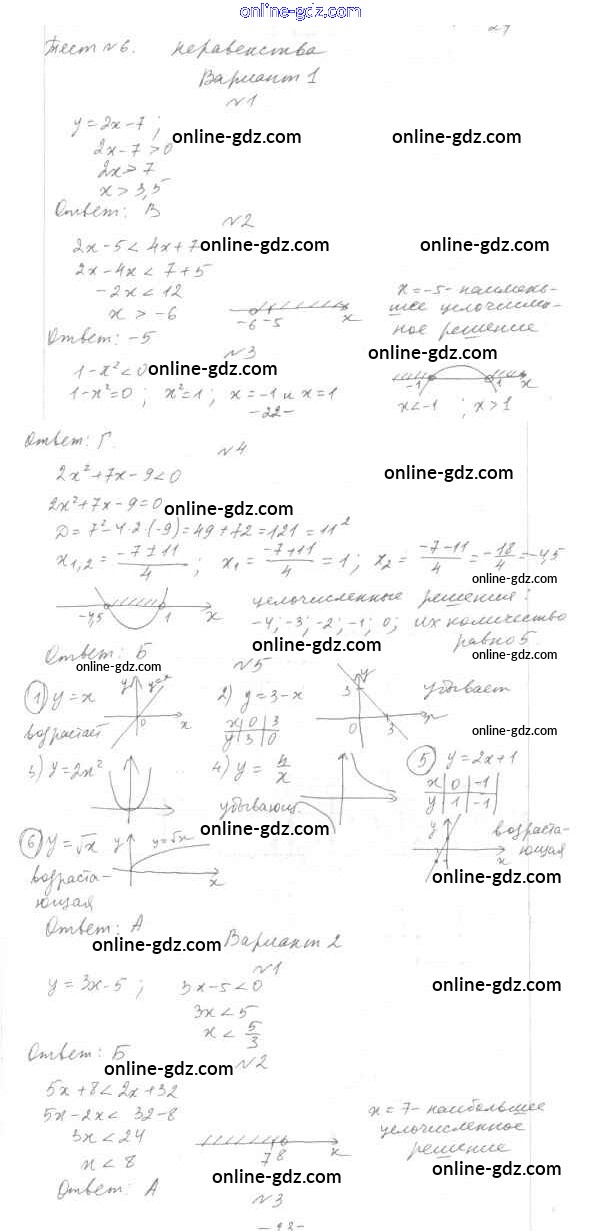 Готовые домашние задания по Алгебре за 7, 8, 9 класс Тесты Мордкович, Тульчинкая Базовый уровень 2013 - 8 класс Тест 6