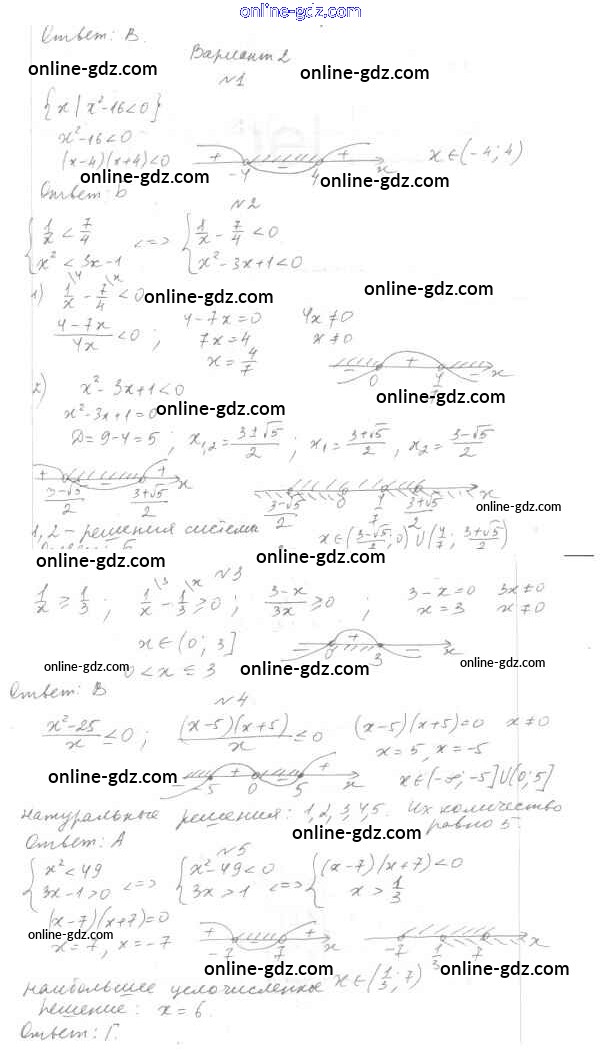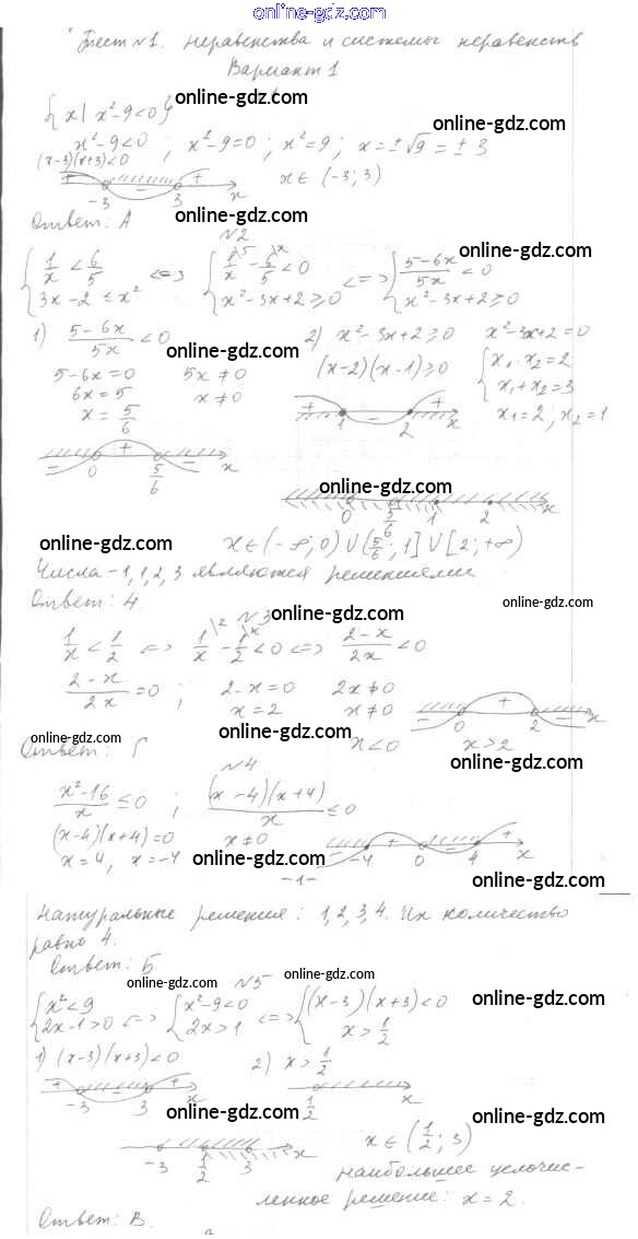 Готовые домашние задания по Алгебре за 7, 8, 9 класс Тесты Мордкович, Тульчинкая Базовый уровень 2013 - 9 класс Тест 1