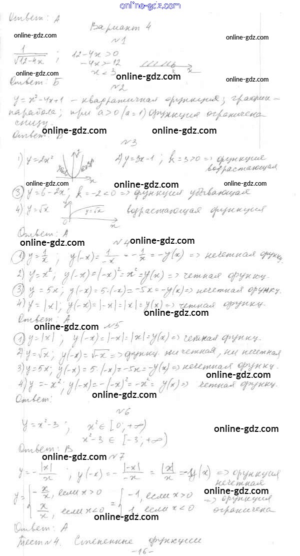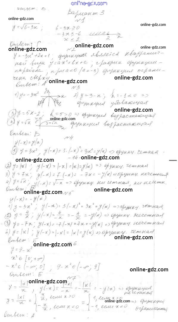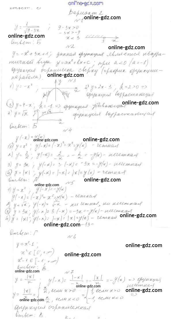 Готовые домашние задания по Алгебре за 7, 8, 9 класс Тесты Мордкович, Тульчинкая Базовый уровень 2013 - 9 класс Тест 3