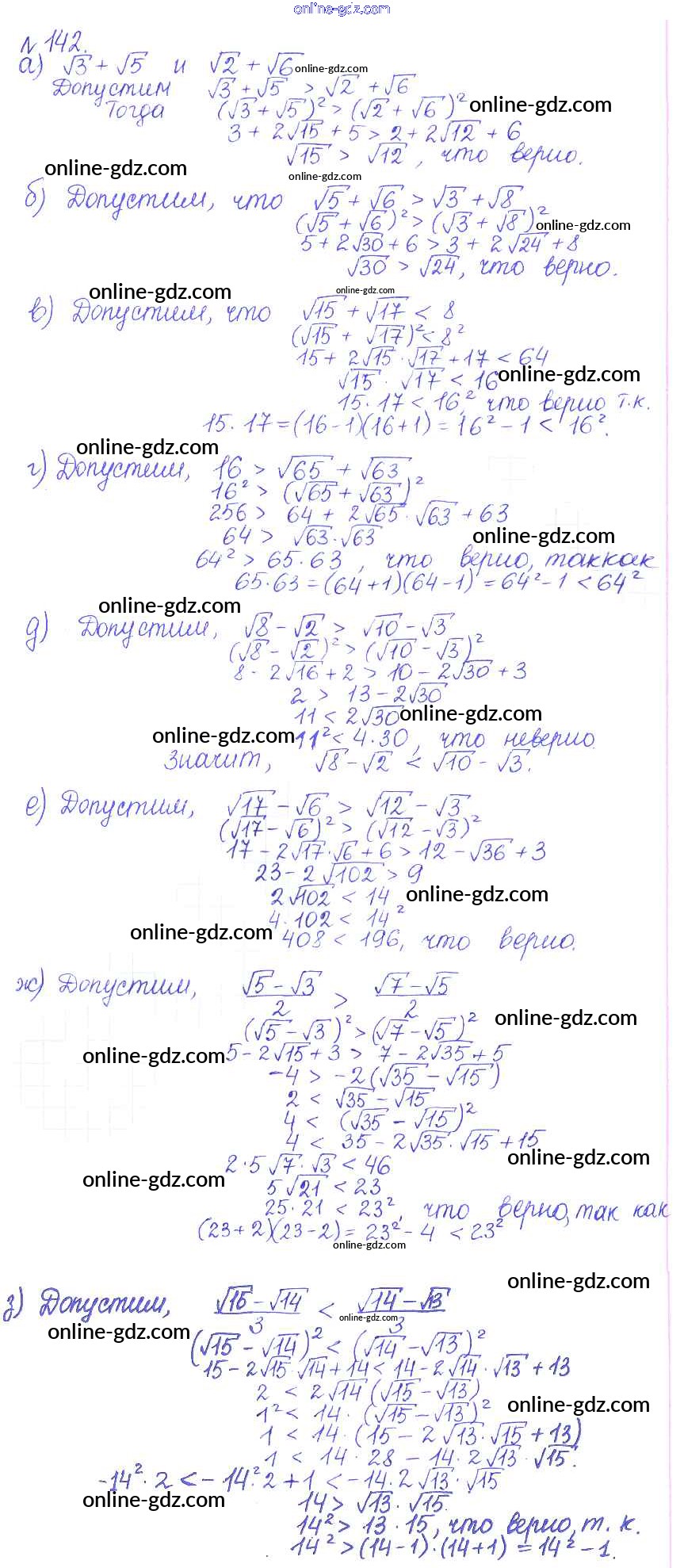 Готовые домашние задания по Алгебре за 9 класс Учебник Дорофеев, Суворова 2016 - Упражнения 142