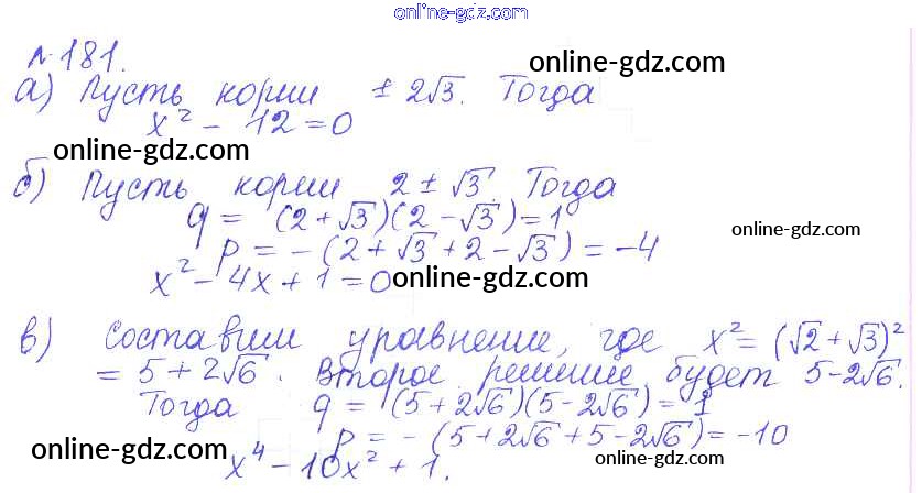 Готовые домашние задания по Алгебре за 9 класс Учебник Дорофеев, Суворова 2016 - Упражнения 181
