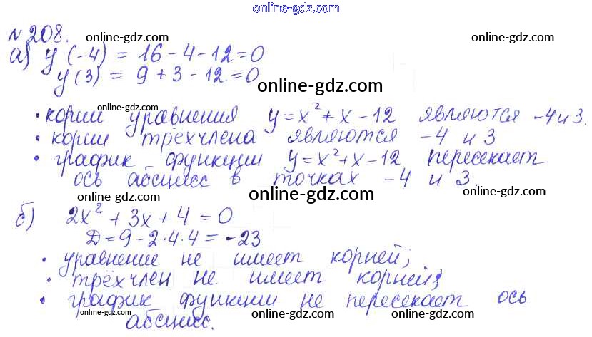 Готовые домашние задания по Алгебре за 9 класс Учебник Дорофеев, Суворова 2016 - Упражнения 208