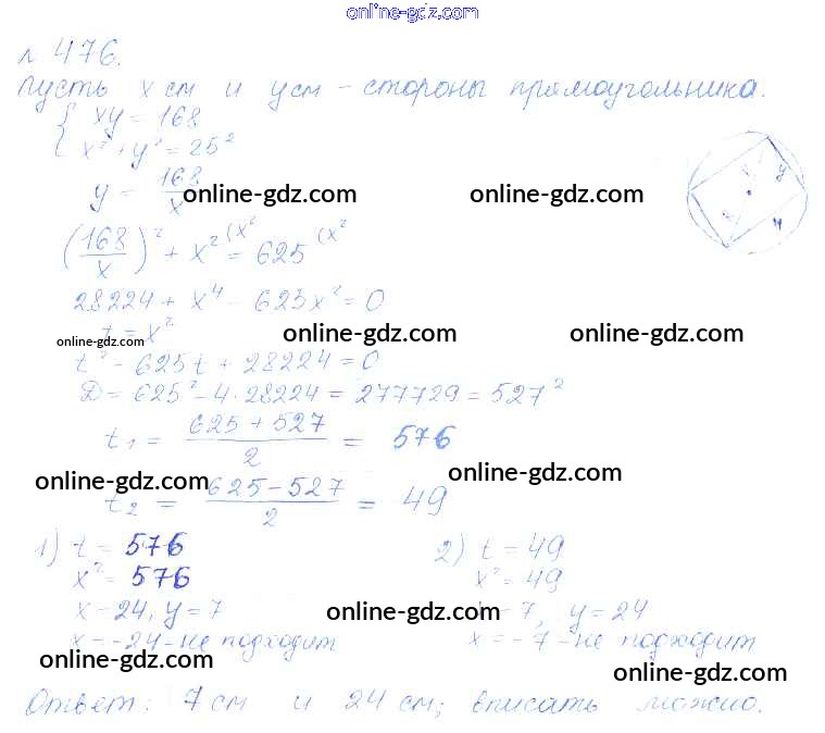 Готовые домашние задания по Алгебре за 9 класс Учебник Дорофеев, Суворова 2016 - Упражнения 476