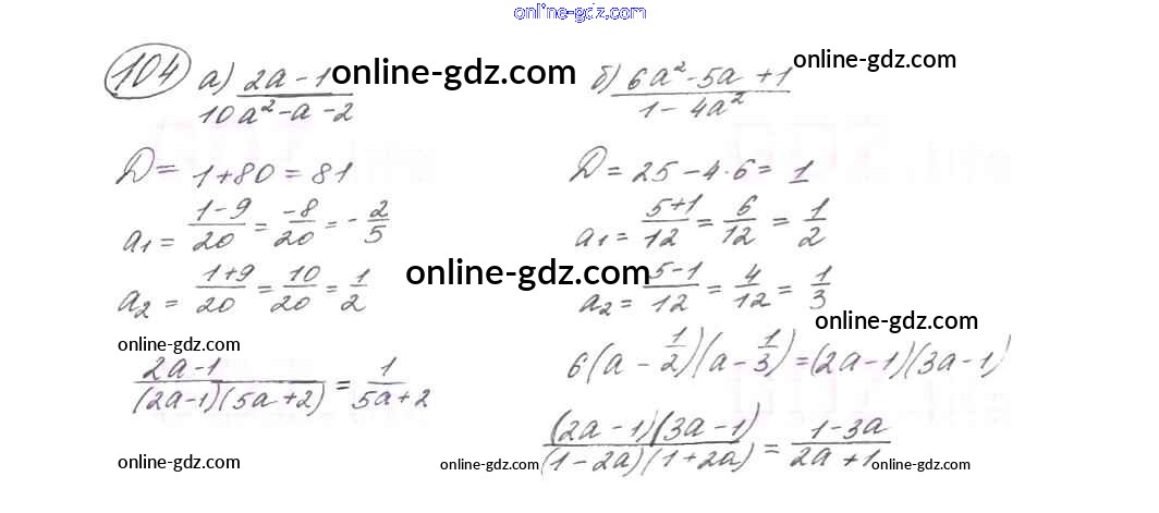 Готовые домашние задания по Алгебре за 9 класс Учебник Макарычев, Миндюк 2014 - Глава 1. Квадратичная функция (упражнения) 104
