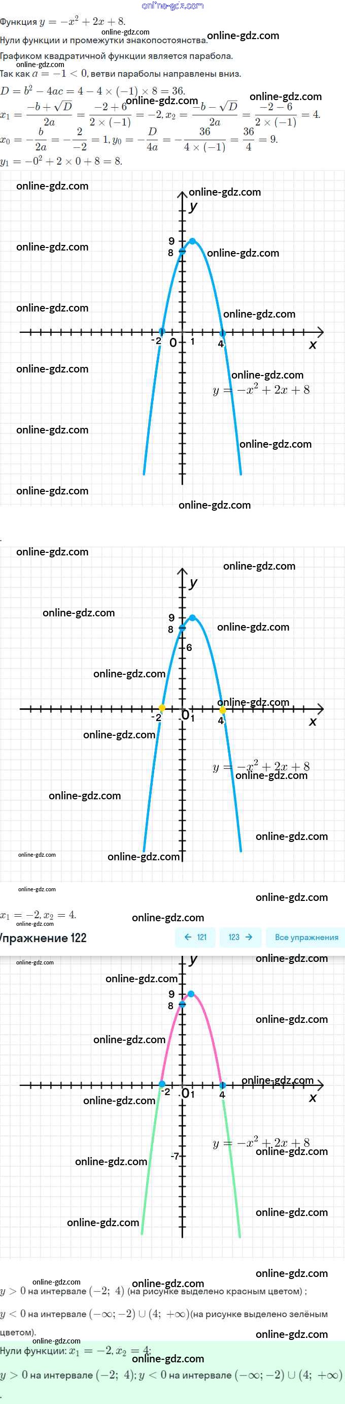 Готовые домашние задания по Алгебре за 9 класс Учебник Макарычев, Миндюк 2014 - Глава 1. Квадратичная функция (упражнения) 122