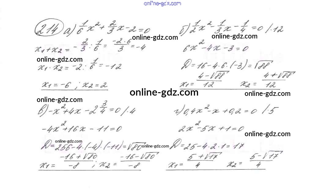 Готовые домашние задания по Алгебре за 9 класс Учебник Макарычев, Миндюк 2014 - Глава 1. Квадратичная функция (упражнения) 214