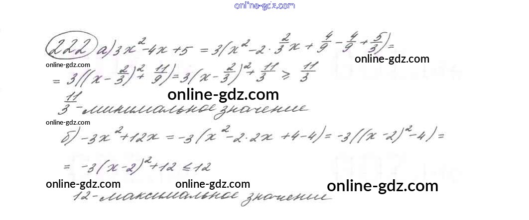 Готовые домашние задания по Алгебре за 9 класс Учебник Макарычев, Миндюк 2014 - Глава 1. Квадратичная функция (упражнения) 222
