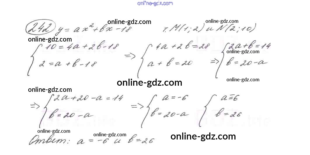Готовые домашние задания по Алгебре за 9 класс Учебник Макарычев, Миндюк 2014 - Глава 1. Квадратичная функция (упражнения) 242
