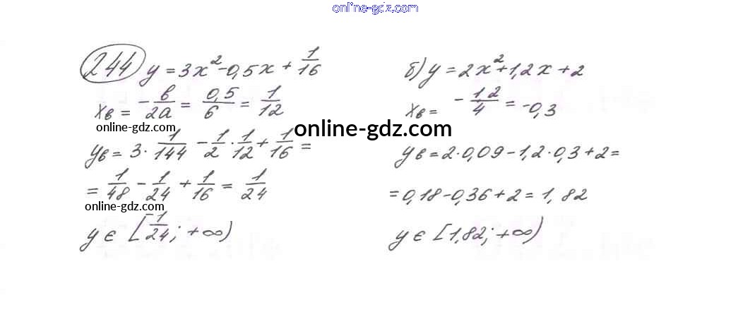 Готовые домашние задания по Алгебре за 9 класс Учебник Макарычев, Миндюк 2014 - Глава 1. Квадратичная функция (упражнения) 244