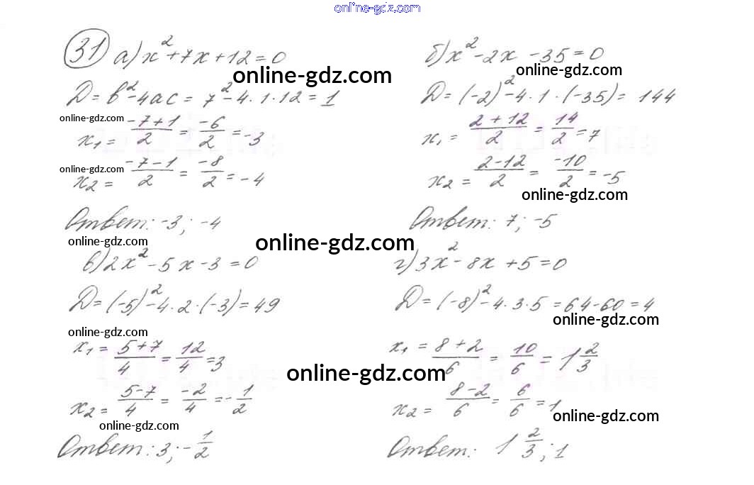 Готовые домашние задания по Алгебре за 9 класс Учебник Макарычев, Миндюк 2014 - Глава 1. Квадратичная функция (упражнения) 31