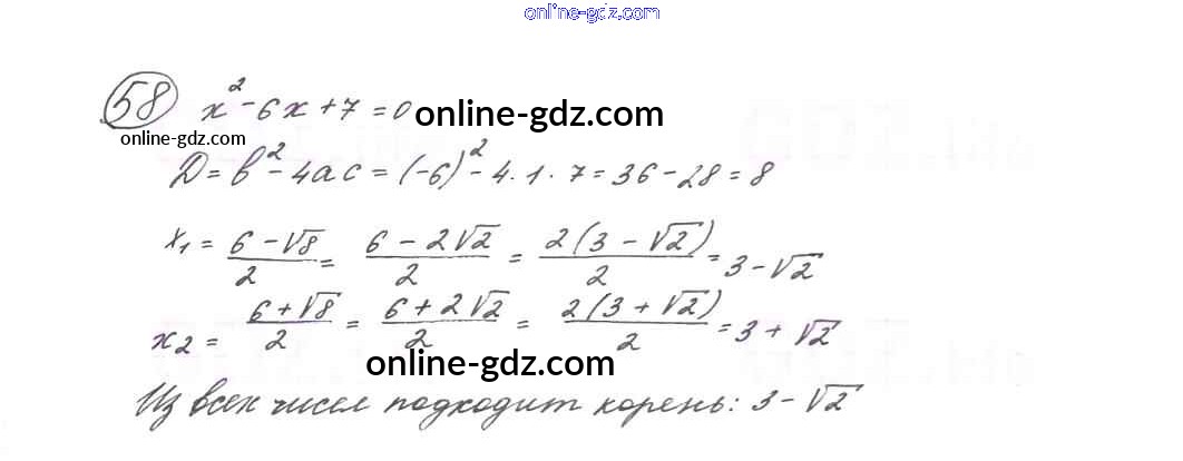 Готовые домашние задания по Алгебре за 9 класс Учебник Макарычев, Миндюк 2014 - Глава 1. Квадратичная функция (упражнения) 58
