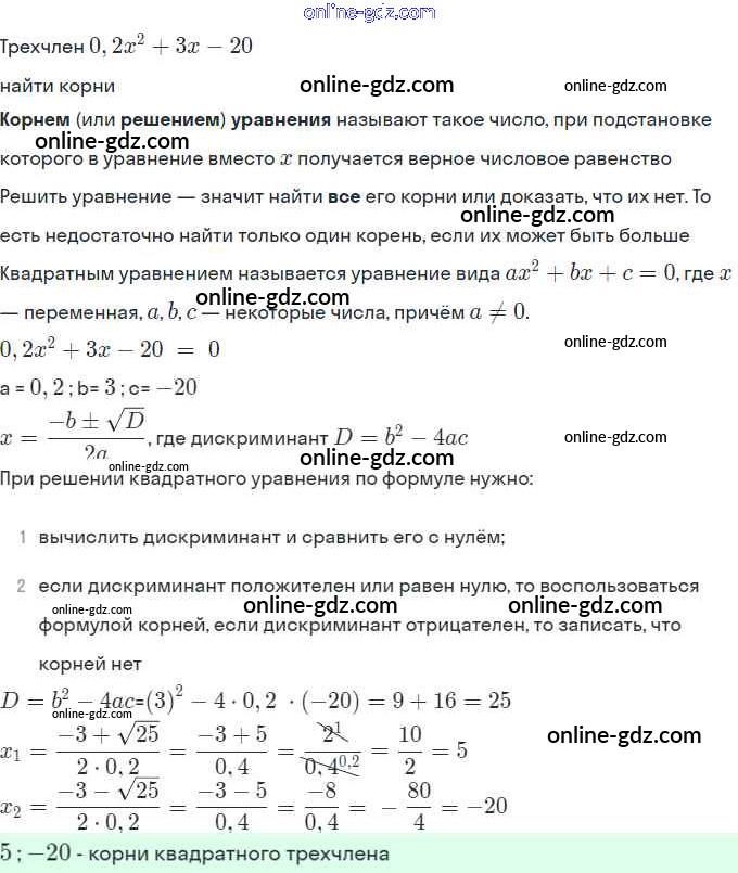 Глава 1. Квадратичная функция (упражнения)