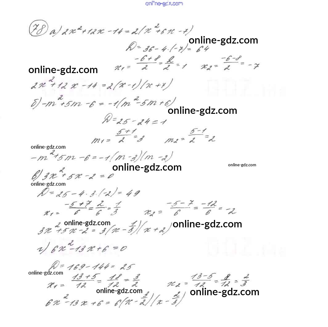 Готовые домашние задания по Алгебре за 9 класс Учебник Макарычев, Миндюк 2014 - Глава 1. Квадратичная функция (упражнения) 78